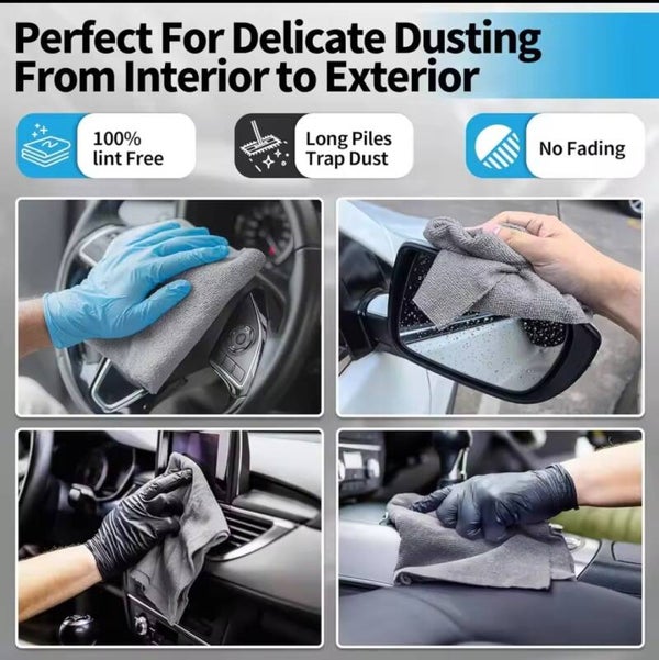 Mikrofaser-Reinigungstücher, grau, 12 Stück (31,8 x 31,8 cm), hohe Leistung, 1200 Wäschen, ultra-saugfähiges Mikrofasertuchgewebe, Schmutz und Flüssigkeit für streifenfreien Spiegelglanz, Autowaschtuch